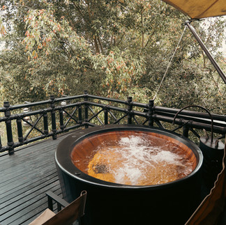 Accommodation: 15 uniquely designed luxury tents with handcrafted interiors, central bathtubs, and private outdoor jacuzzis (one tent with private pool)